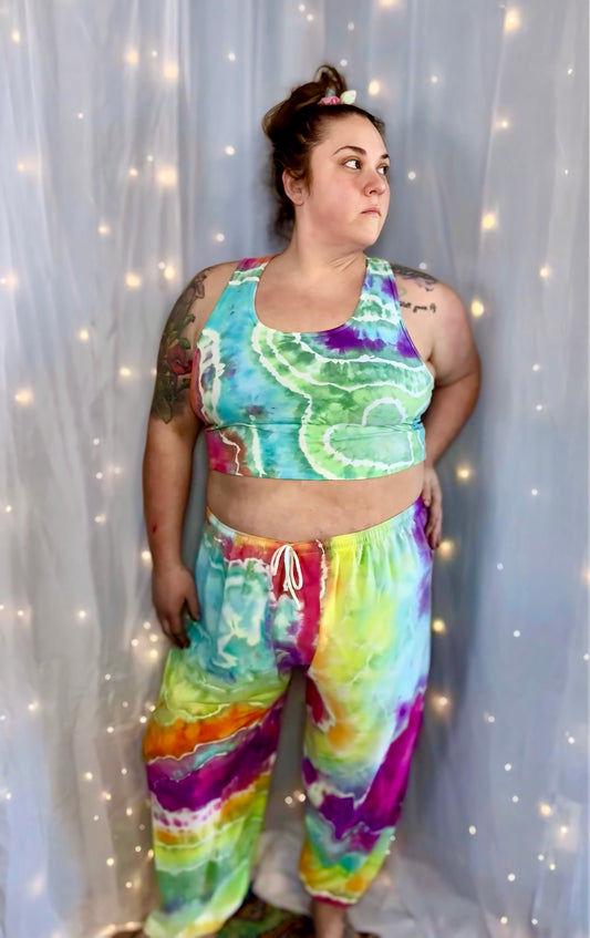 XL Radiant Geode Glow *UV REACTIVE* 2 piece Rave wear/Set with mini skirt & halter top