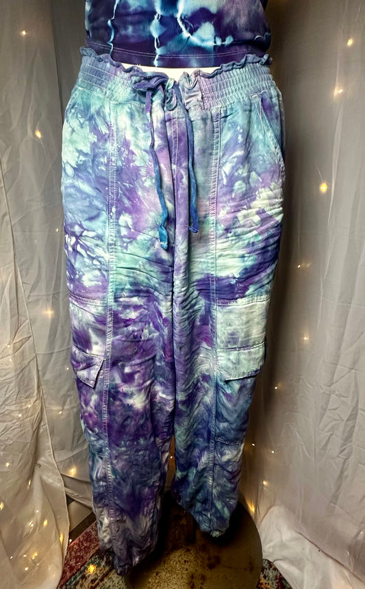 Large (Tall) Secret Garden Tie- Dye Linen Capris *UPCYCLE*