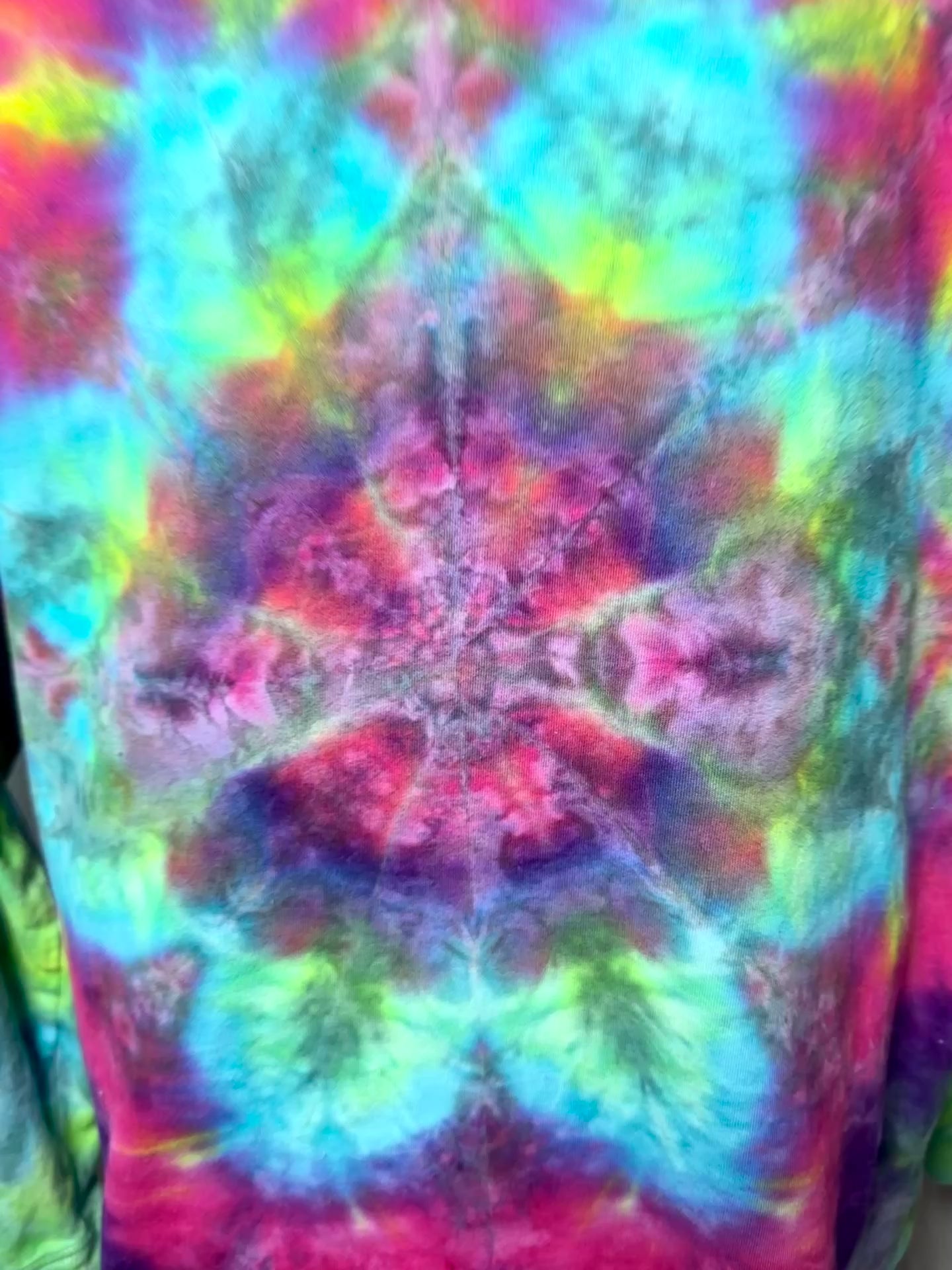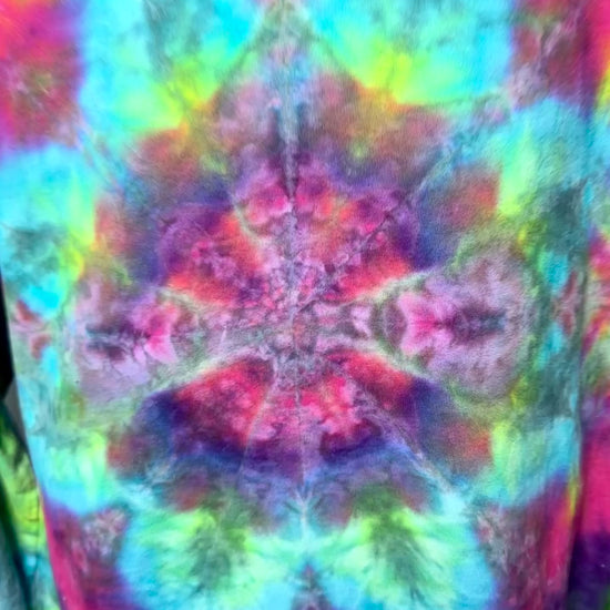 electric eden burst, neon tie dye long sleeve, 2XL tie dye shirt, psychedelic mandala tee, rainbow rave shirt, festival long sleeve top, handmade tie dye clothing, vibrant unisex long sleeve, colorful boho shirt, trippy oversized tee, LS George 2XL shirt