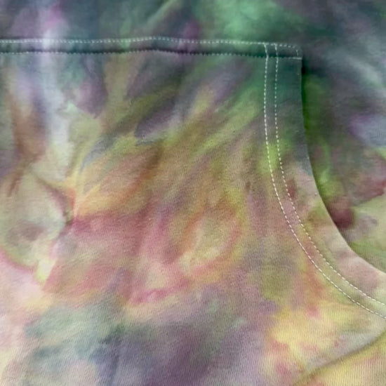 Grounded, moody, and effortlessly soft — the Smoky Opal Ice Dye Hoodie features an earthy blend of mossy greens, muted purples, and stone-gray tones that flow together like a natural mineral formation. This piece has a calm, forested energy while still standing out as a wearable work of art.