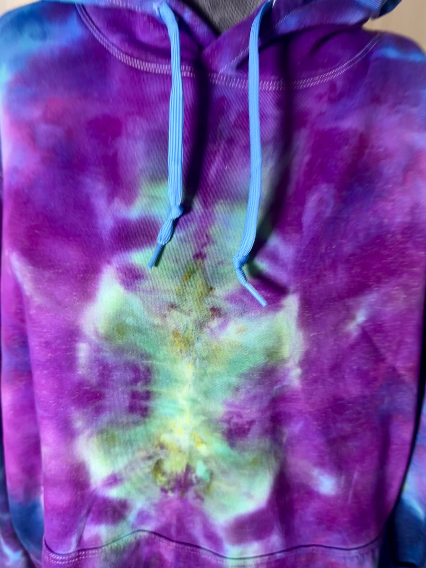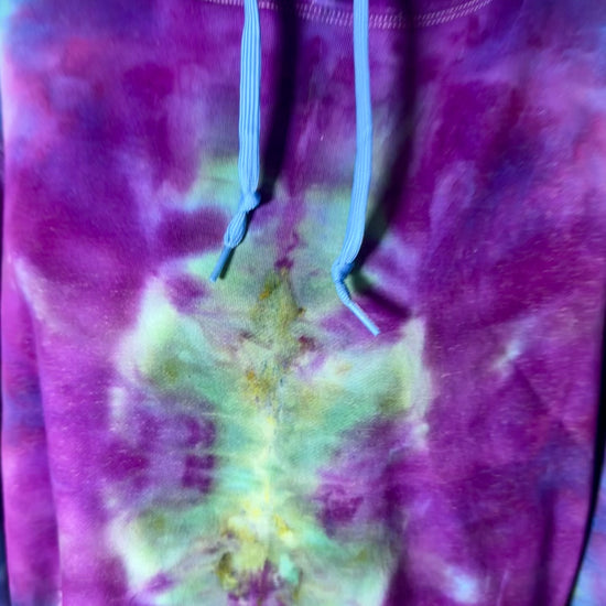 A one-of-a-kind tie-dye hoodie featuring deep cosmic purples and blues with a soft burst of earthy green through the center. Nebula Grove feels like a galaxy tucked inside a quiet forest—bold, grounded, and effortlessly wearable. This piece is truly unique and made to stand out while staying comfortable.
