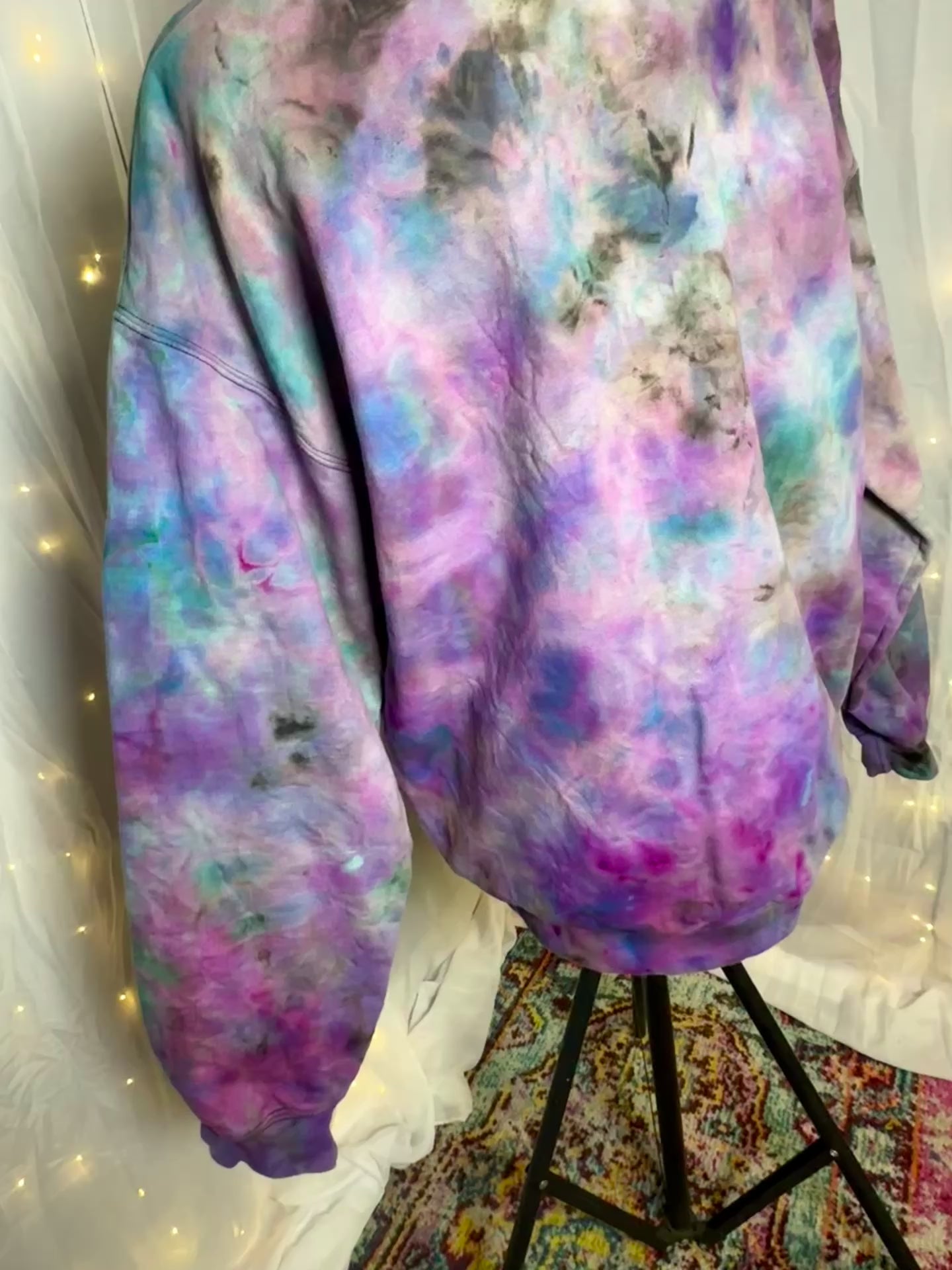 galaxy smoke sweatshirt, reverse dyed crewneck, large crewneck sweatshirt, handmade sweatshirt, unisex sweatshirt, one of a kind clothing, cosmic tie dye, artisan dyed apparel, slow fashion clothing, streetwear sweatshirt