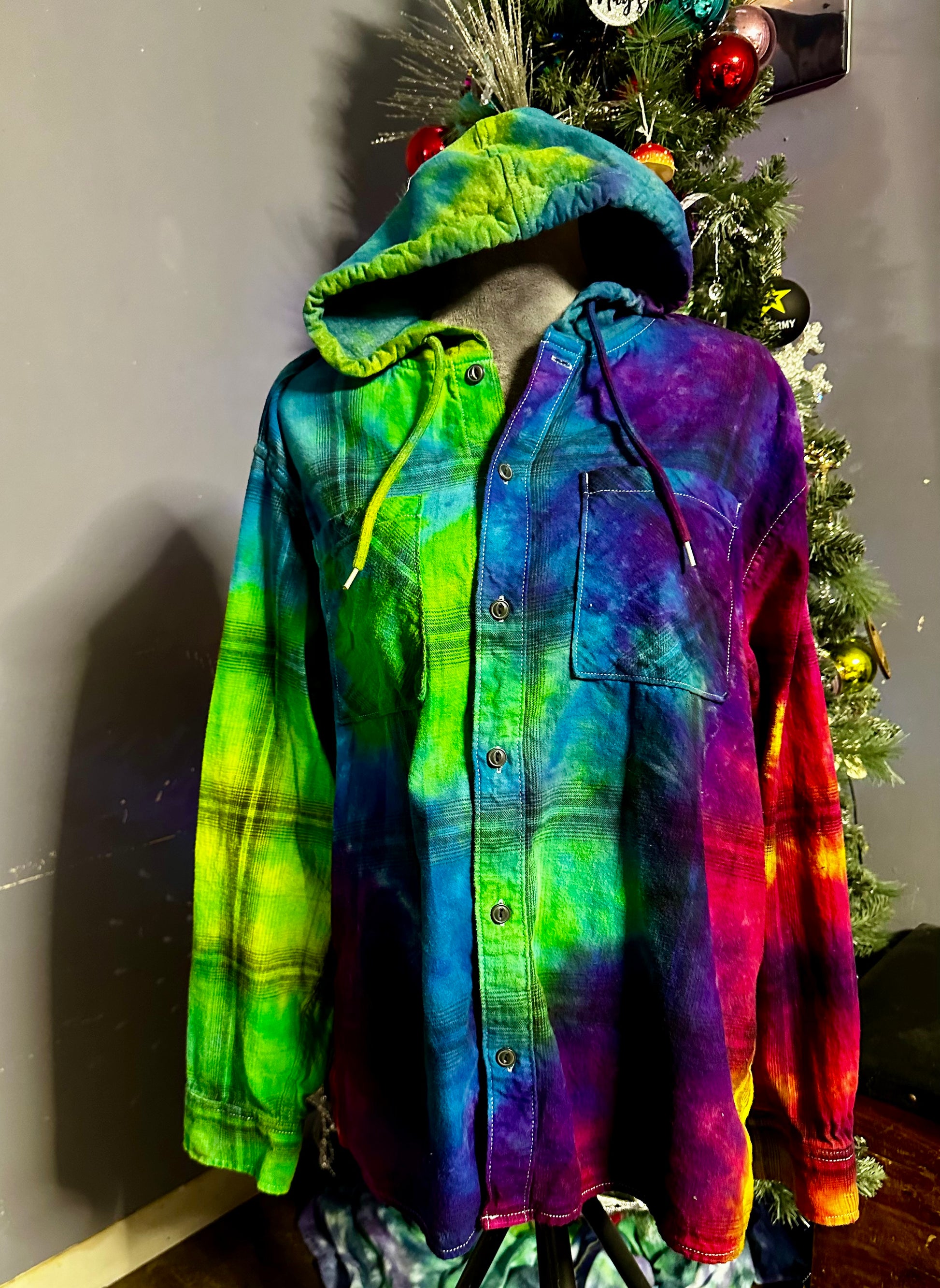 Large Hooded Rainbow Flannel