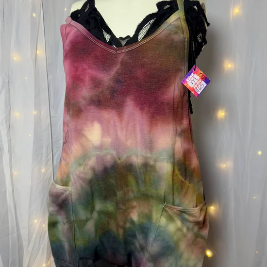 retro romper, boho romper, rainbow romper, earthy rainbow outfit, festival romper, baggy romper, oversized romper, boutique romper, hippie outfit, 70s inspired clothing, rustic rainbow, women’s medium romper, tie dye romper