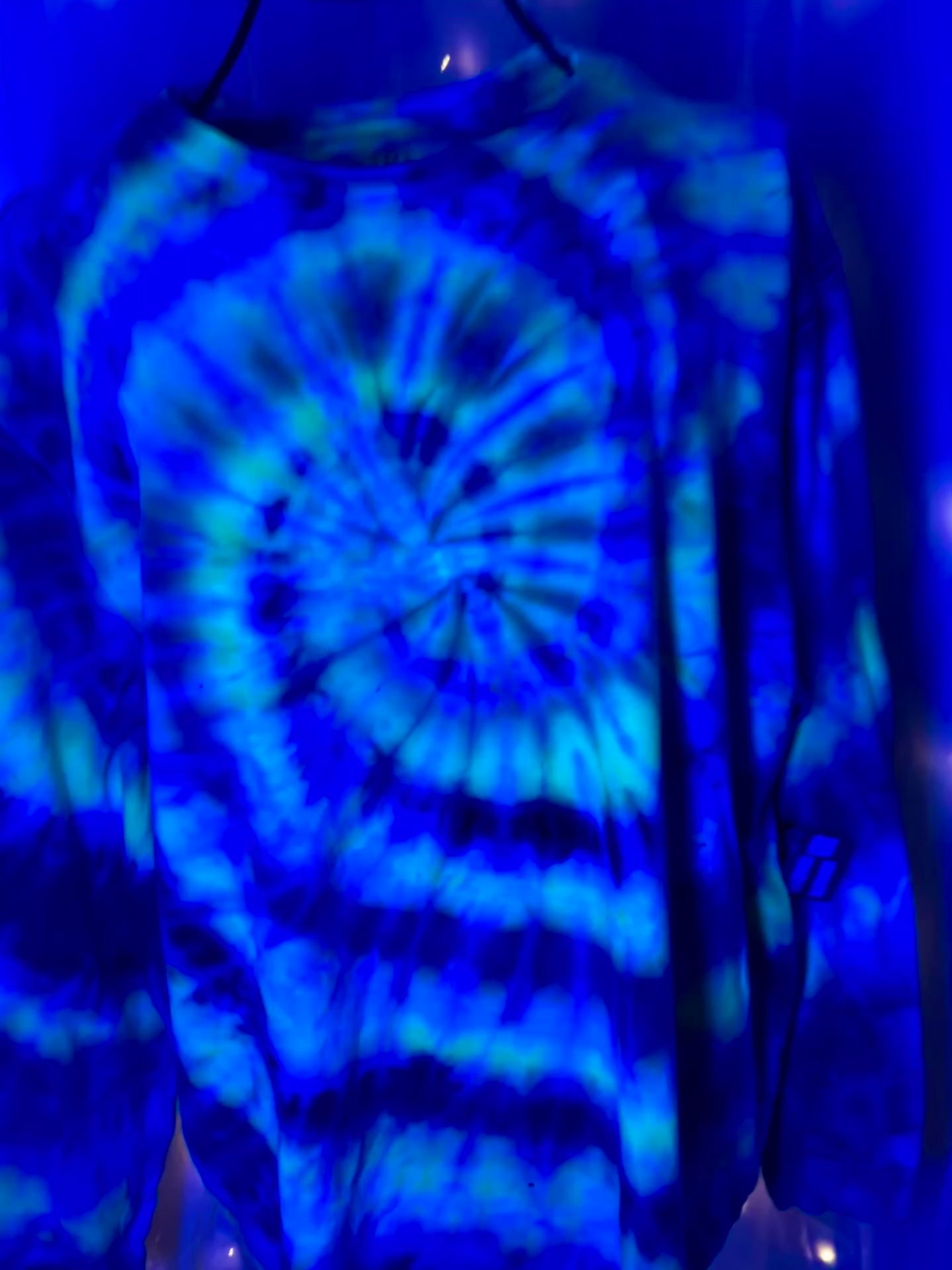 3XL UV reactive shirt, blacklight tie dye long sleeve, LS George 3XL, blue spiral tie dye, glow in blacklight shirt, festival long sleeve tee, plus size tie dye, rave clothing men, vibrant cotton long sleeve, boutique handmade shirt