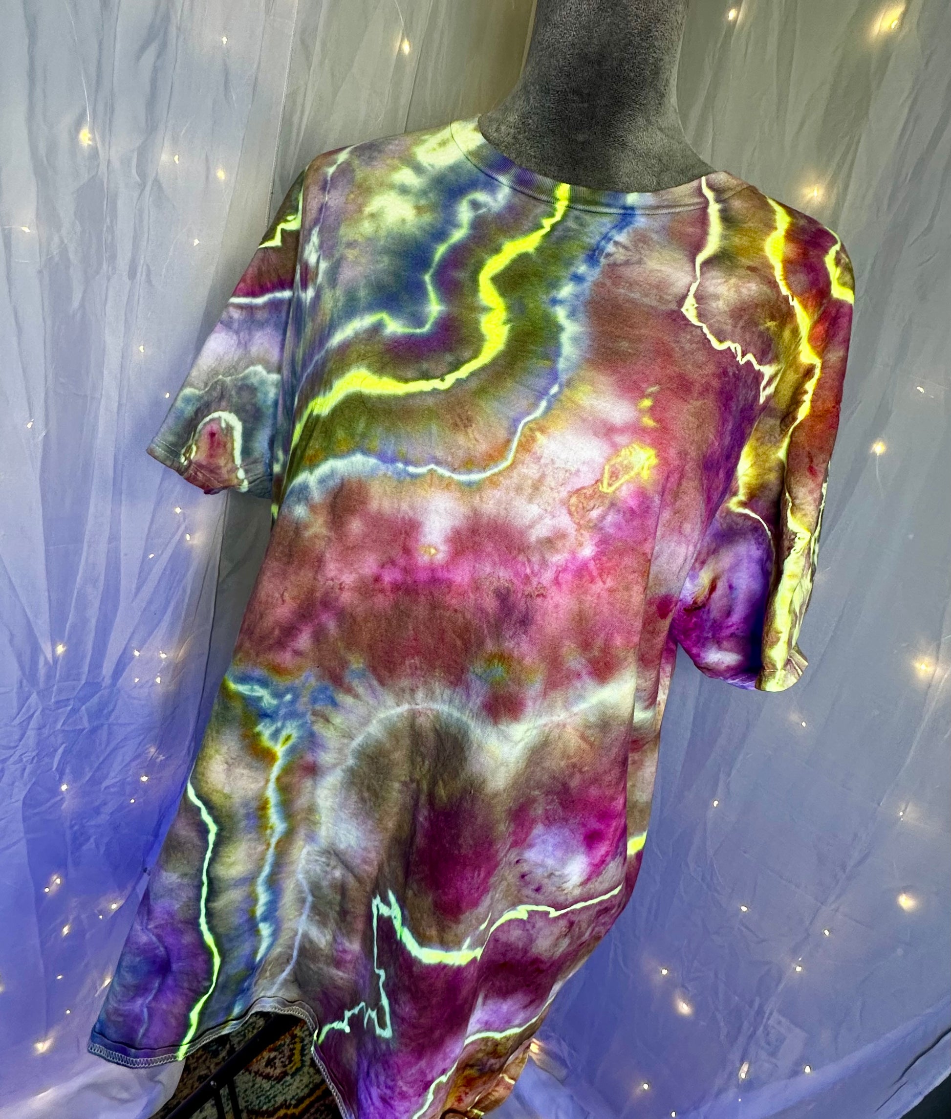 uv reactive shirt, blacklight tee, festival clothing, rave shirt, electric tie dye, lightning shirt, midnight tie dye, one of a kind shirt, handmade dyed tee, statement graphic tee, cosmic tie dye, men’s xl shirt, unisex festival top